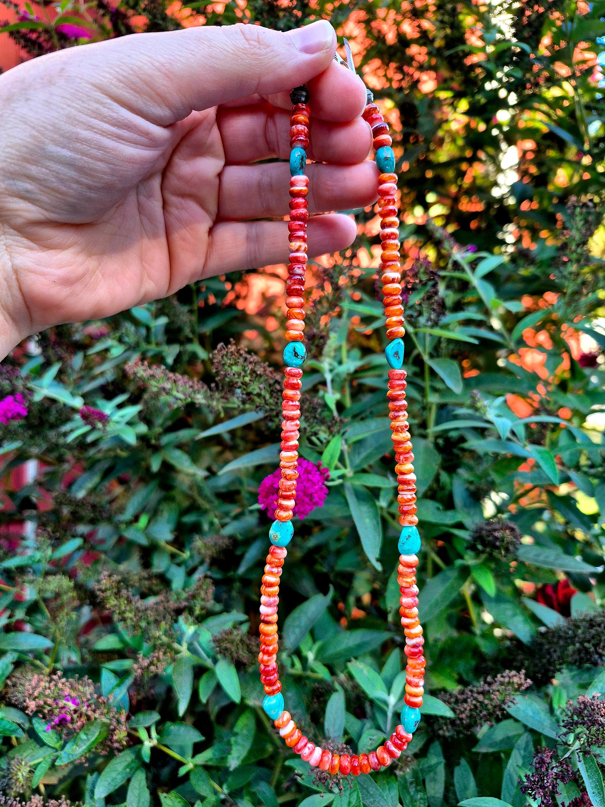 20" necklace with spiny oyster & Kingman turquoise Navajo made by Naomi Garcia