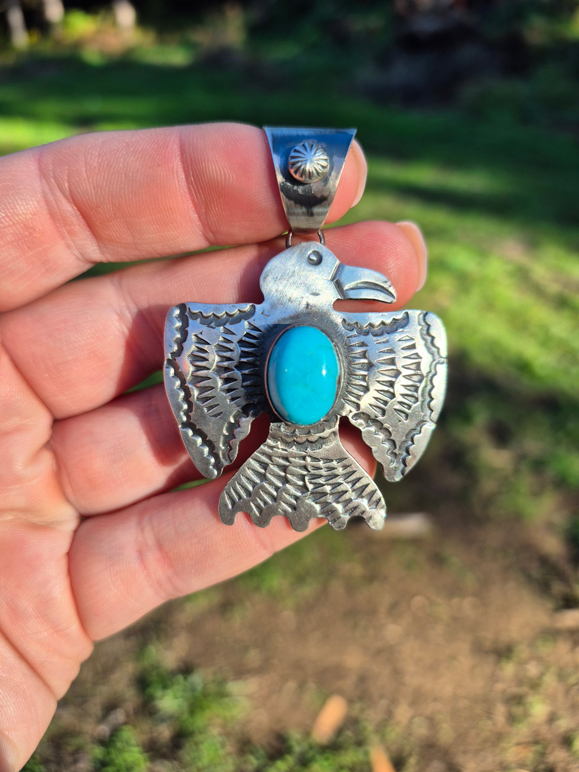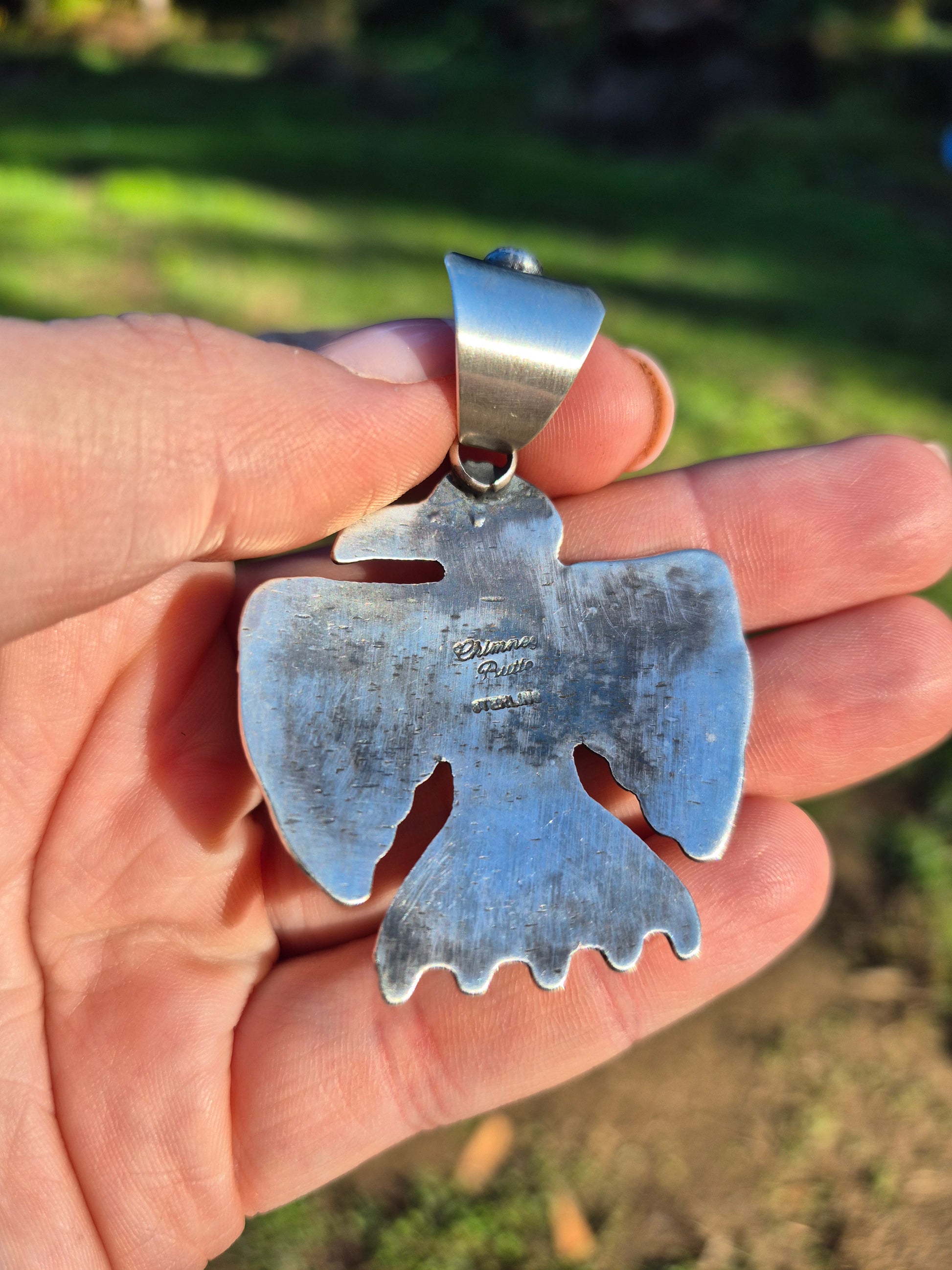 Kingman & sterling large thunderbird pendant made by Navajo artist Chimney Butte.