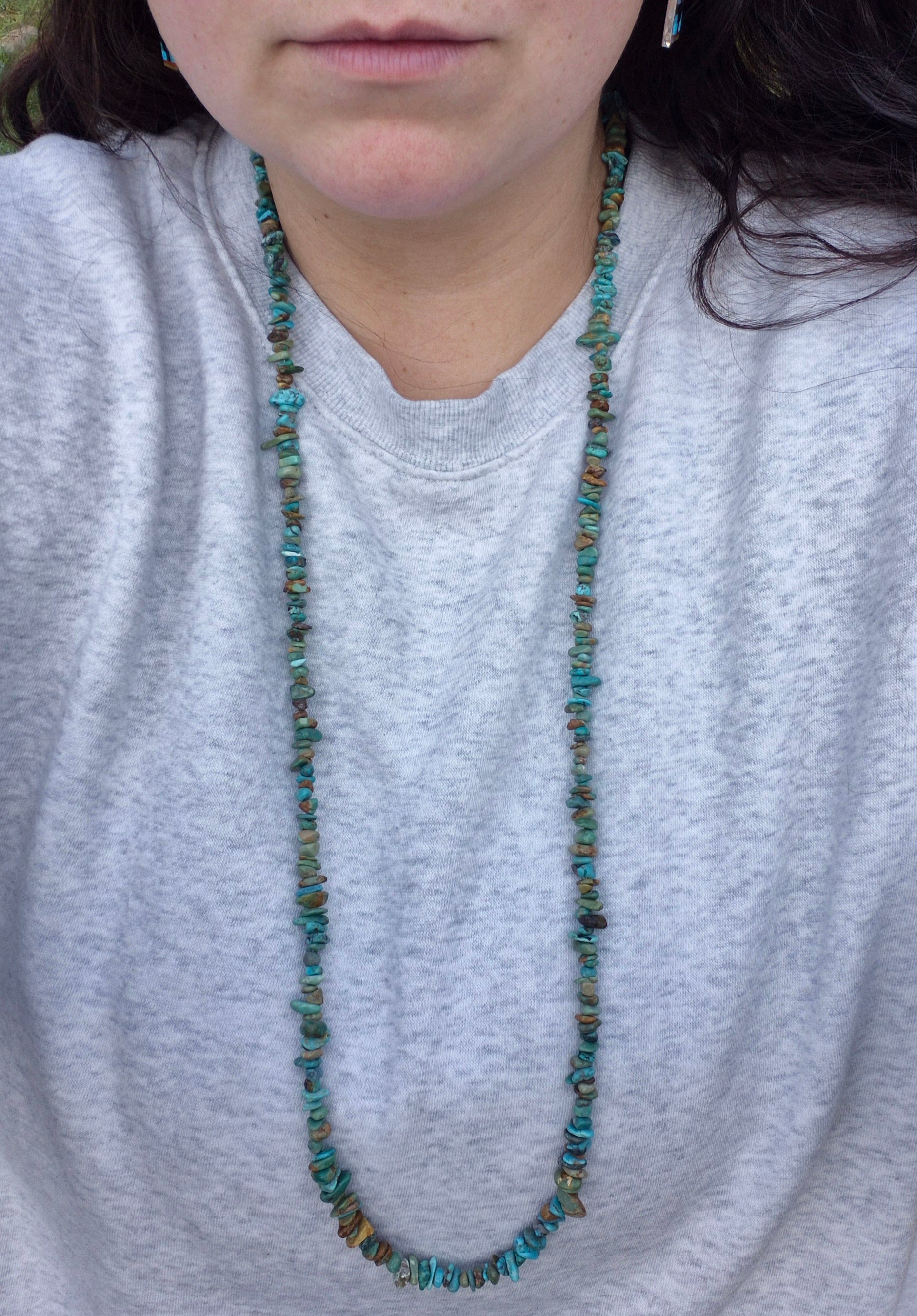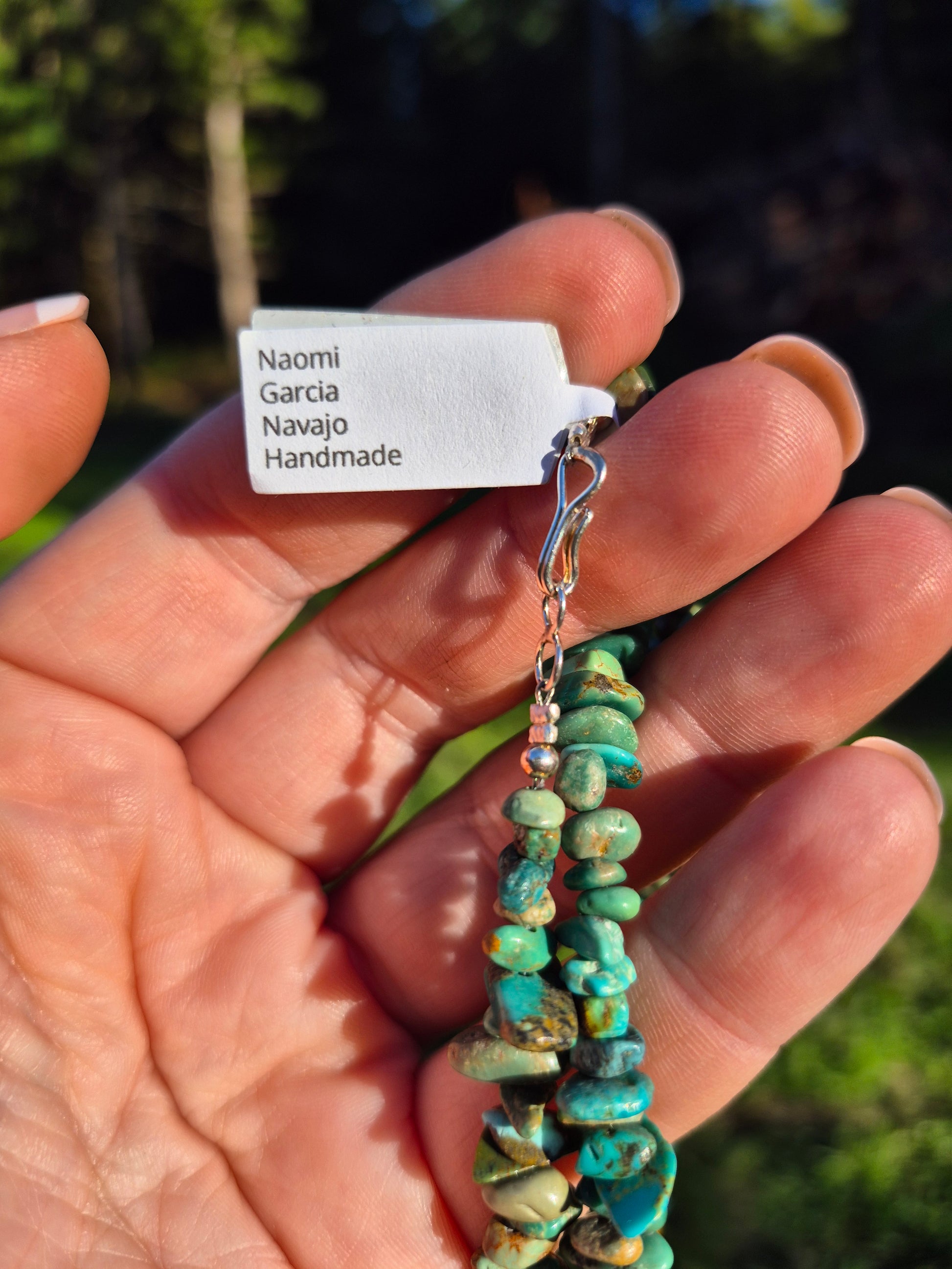 38" Kingman chip necklace Navajo made by Naomi Garcia.