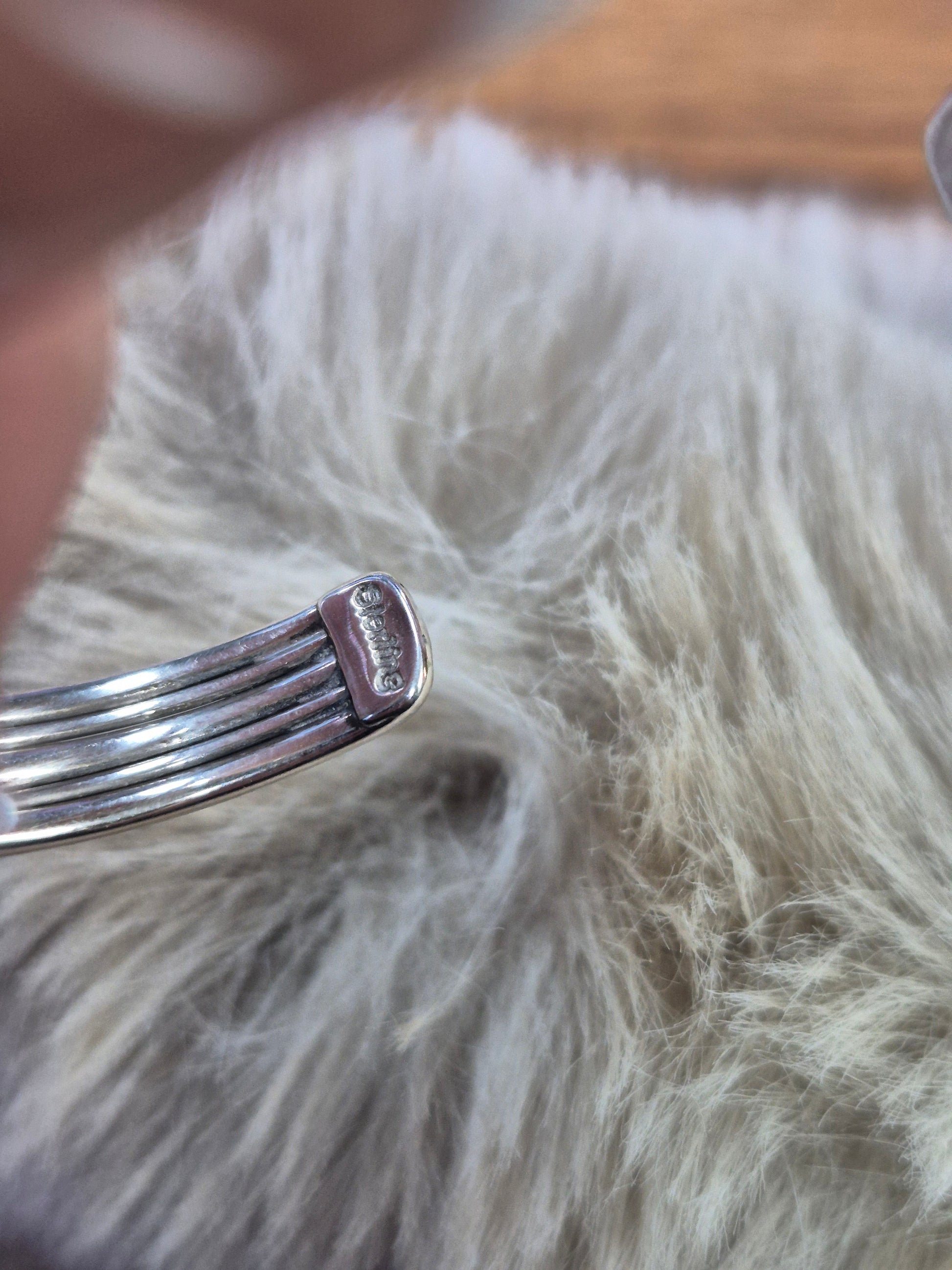 Tons of flex, Navajo made sterling silver & green turquoise in a 7" cuff. Stone looks to have a small chip from when being placed in the bezel - but is completely secure & stabalized.