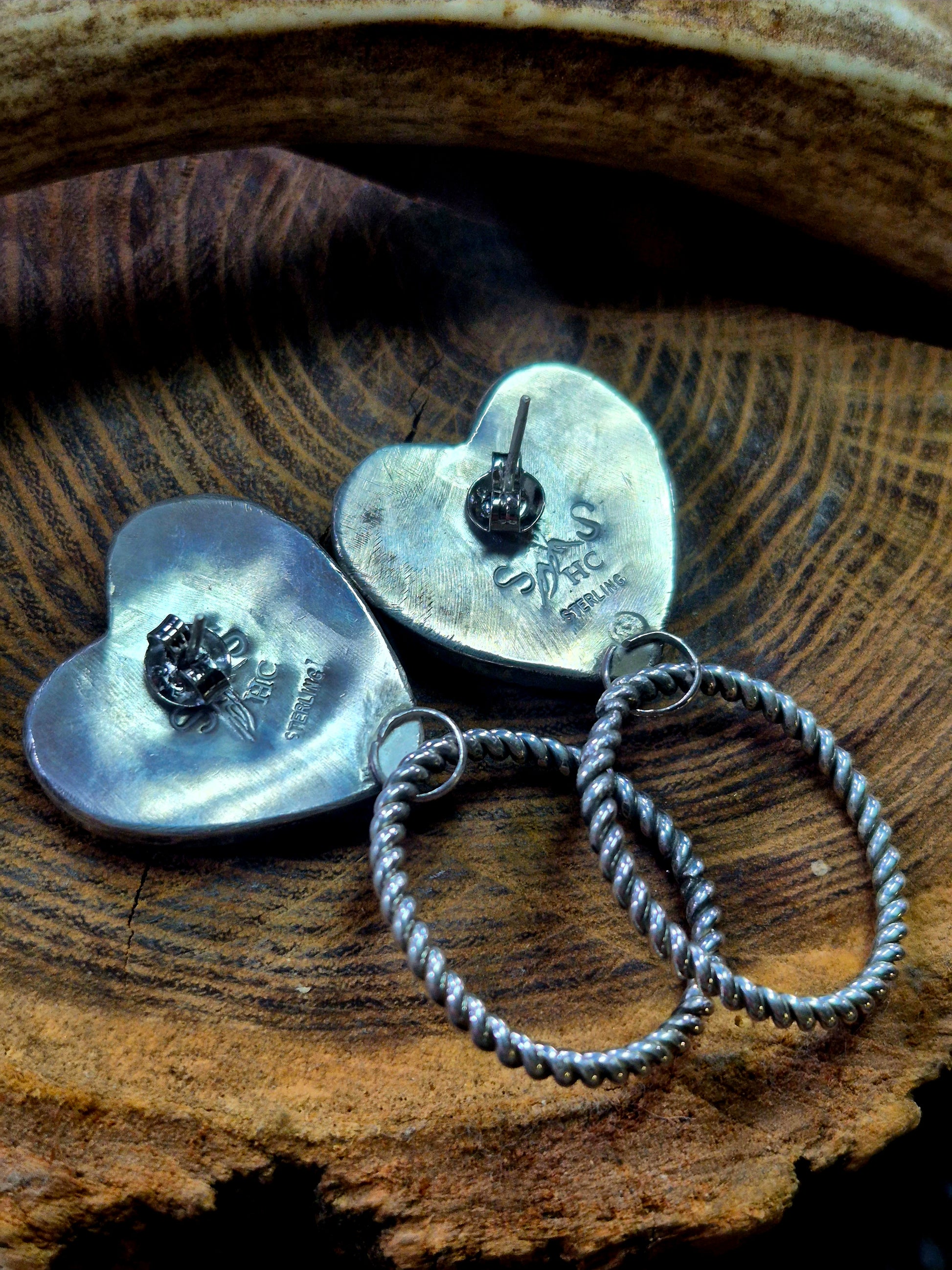 Made here at SVS, sterling silver & purple spiny oyster with 1" twisted hoops.