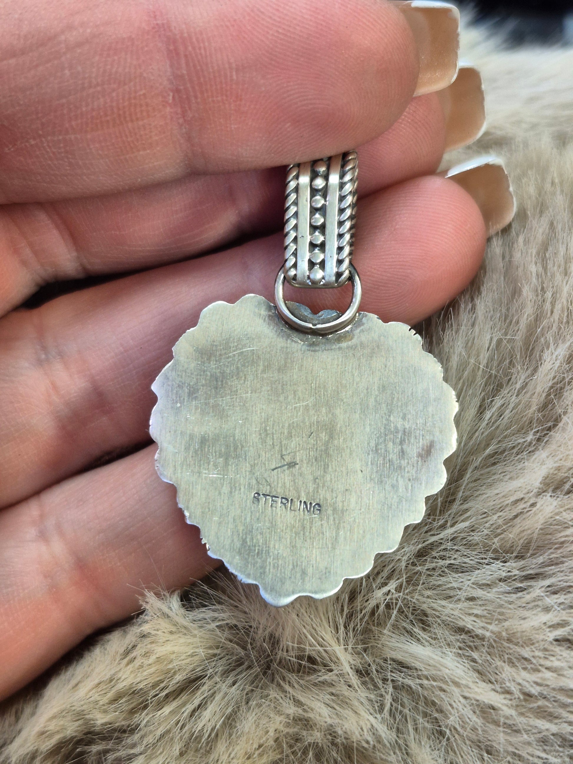 Navajo made, sterling silver & purple spiny heart shaped pendant. Stamped & unsigned