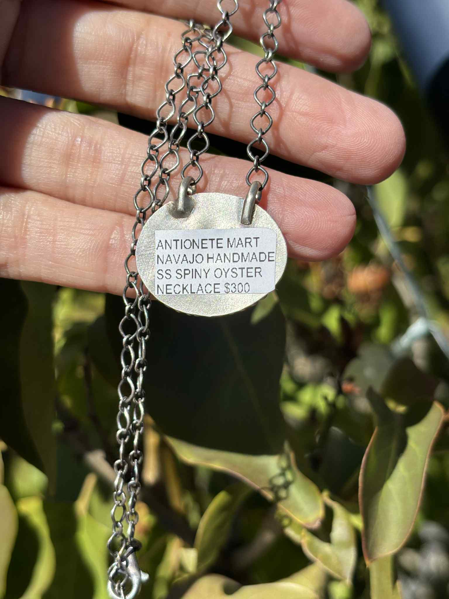 Navajo made by Antoinette Martinez, 18" purple spiny & sterling silver.