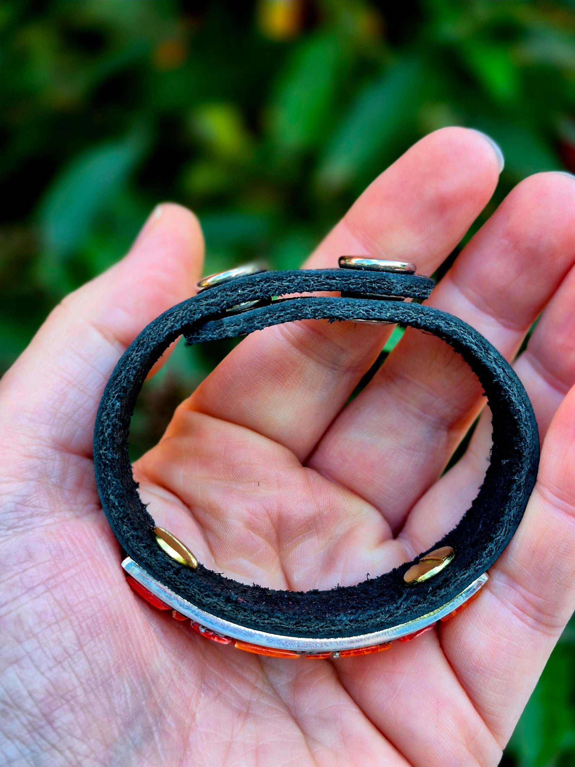 Navajo made by Edison Yazzie adjustable& fits 6" - 8" wrist. Spiny oyster, sterling silver & leather.