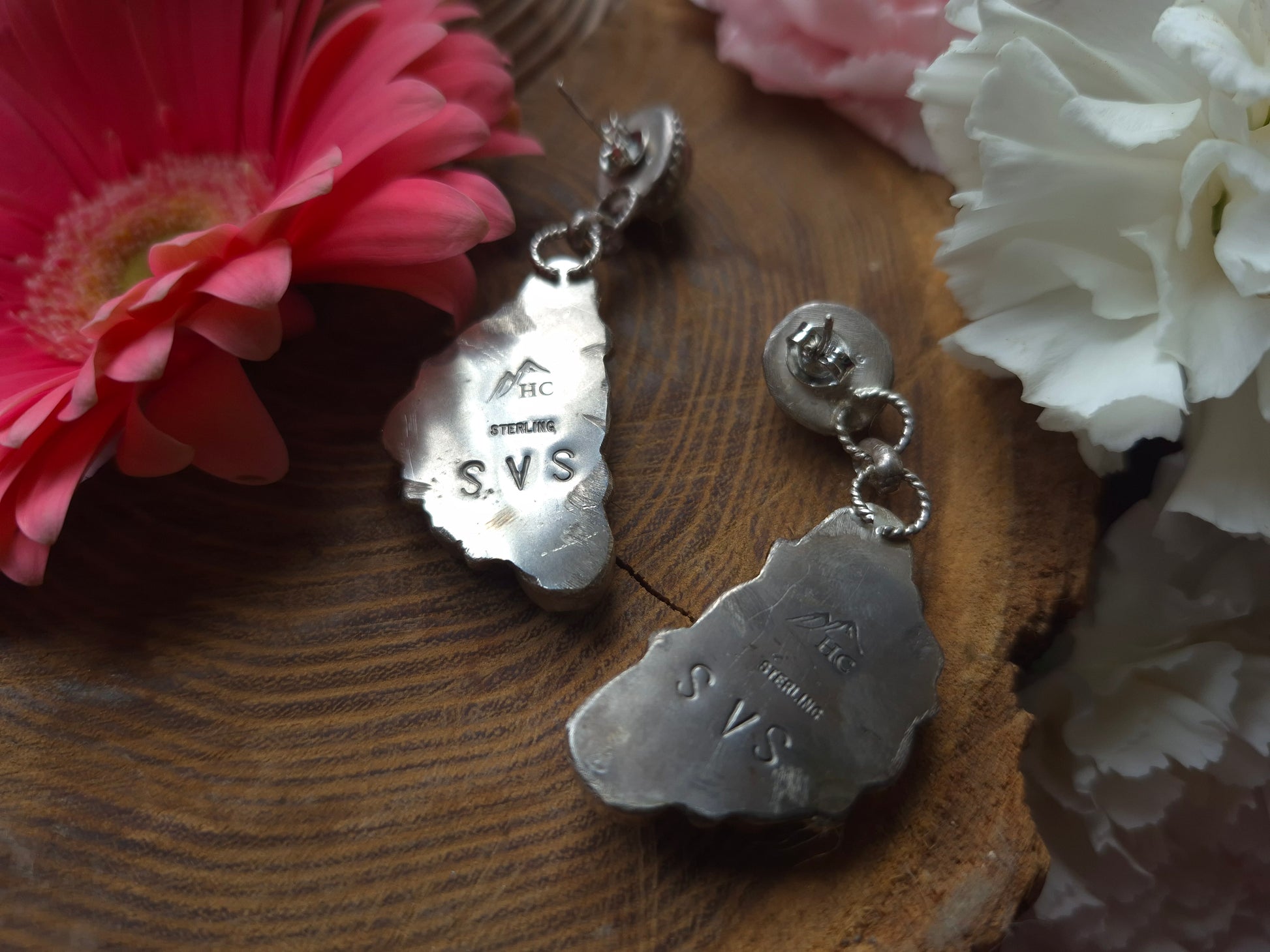 Made by us at SVS, artist Hannah Coogan. Sterling silver, Verde Valley Turquoise & Fox Turquoise - discounted for being made by a new silversmith & may have slight cosmetic flaws (all pictured)